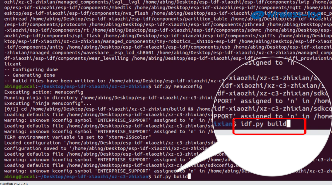 輸入 “idf.py build” 命令,開始編譯小智固件。