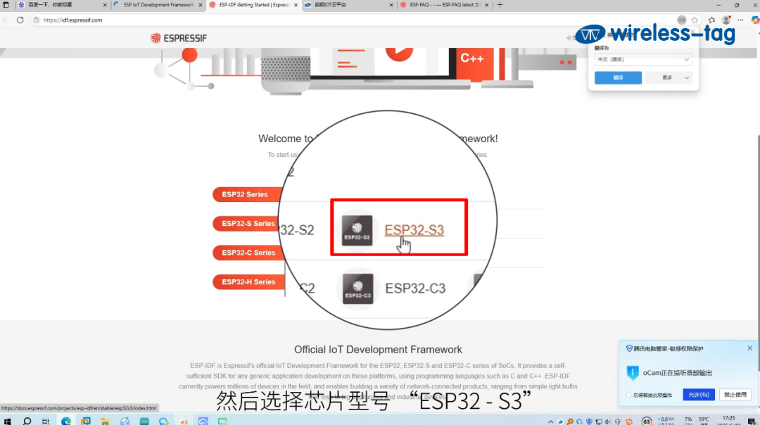 2.找到 “getting started guide”,選擇芯片型號 “ESP32 - S3”。
