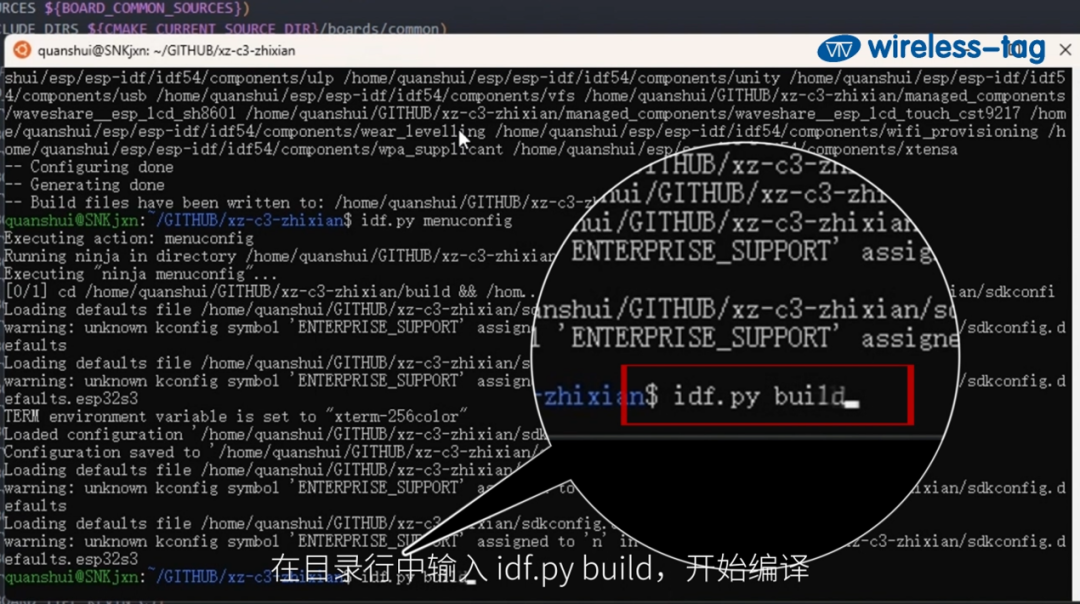 2.輸入 “idf.py build” 命令,重新編譯小智固件。