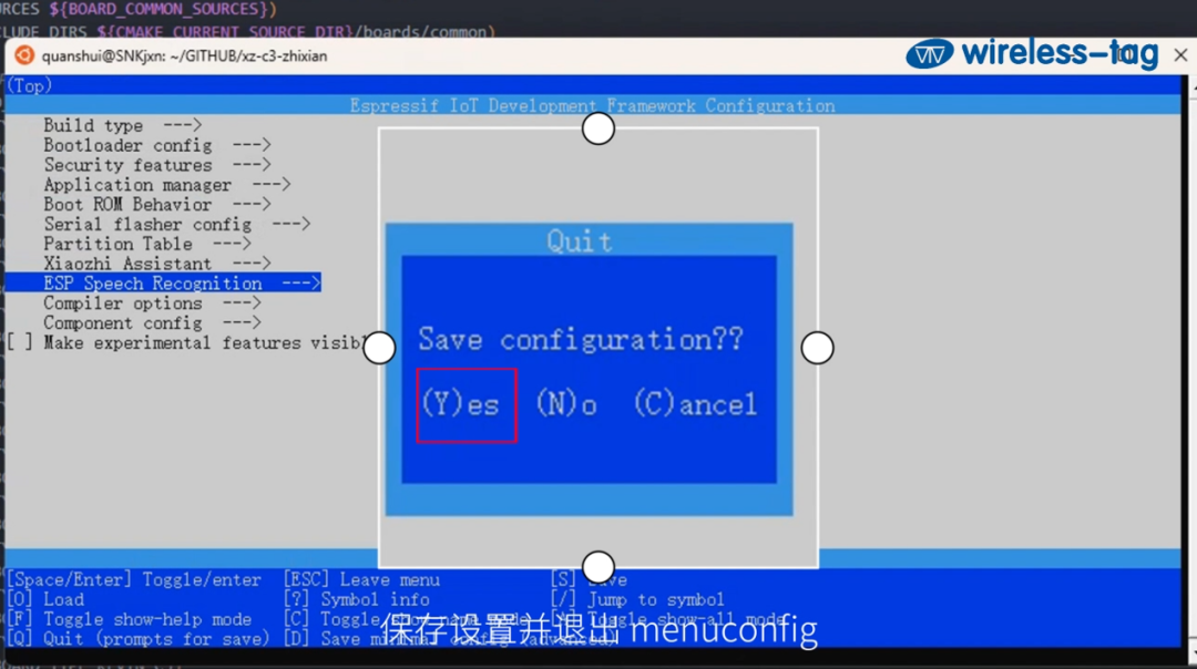 2.輸入 “idf.py menuconfig”,進入配置界面。