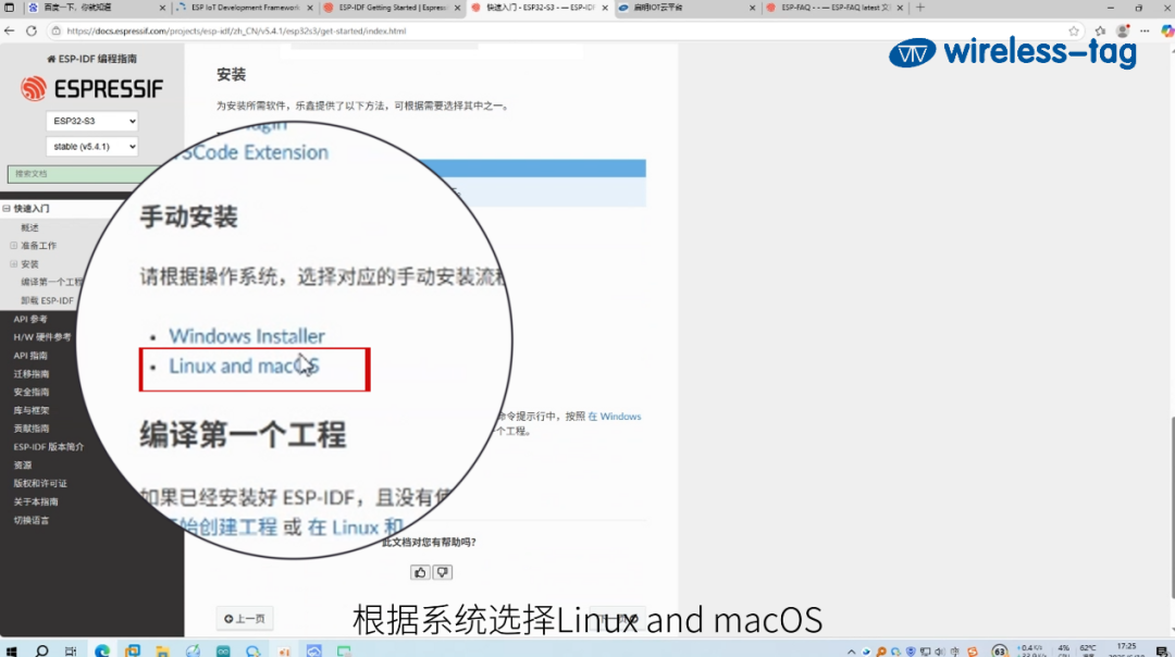 3.點擊 “快速入門”,在手動安裝頁面中,根據(jù)系統(tǒng)選擇 “Linux and macOS”。按照官方提供的步驟,完成 ESP - IDF 開發(fā)環(huán)境的搭建。