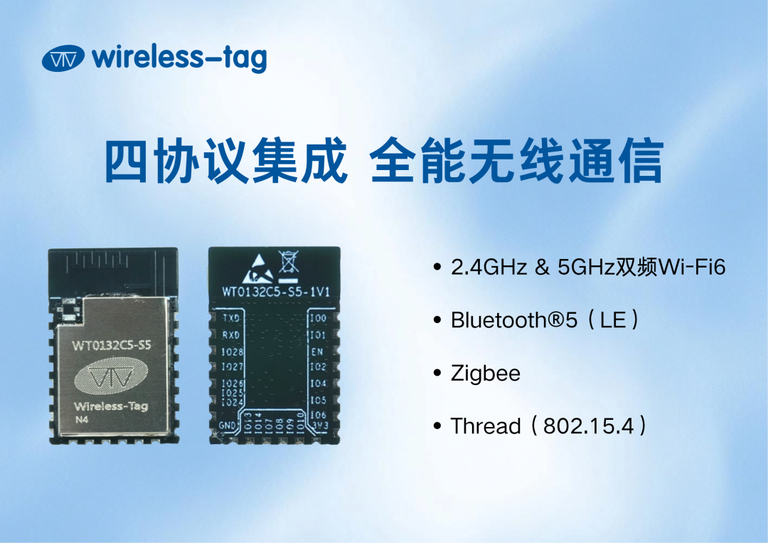 啟明云端推出的WT0132C5-S5模組,搭載樂鑫ESP32-C5芯片,以強勁性能、多協議融合能力和強力安全防護,直擊物聯網設備三大死穴: