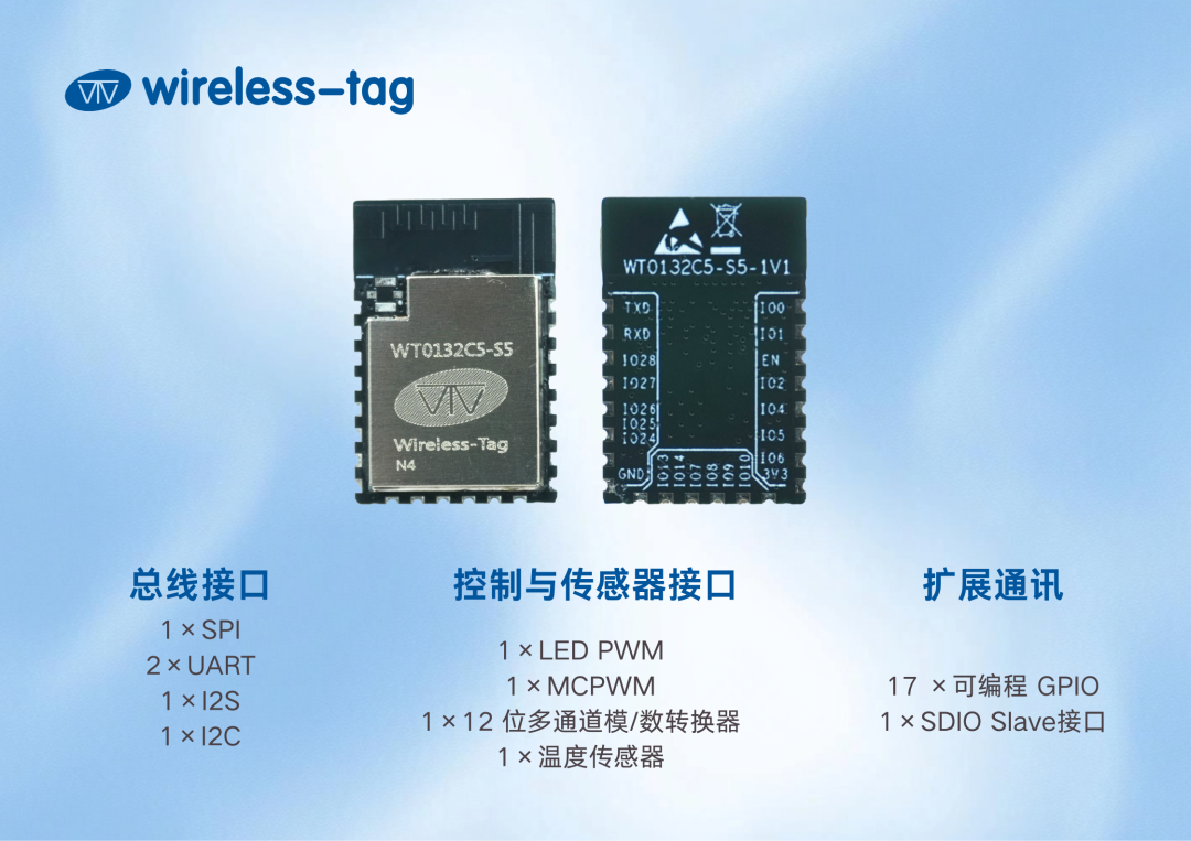 無論是智能家居的多設備協同、工業(yè)自動化產線監(jiān)控、醫(yī)療電子體征監(jiān)測,還是移動支付終端和HMI人機交互界面,WT0132C5-S5模組皆可勝任。
